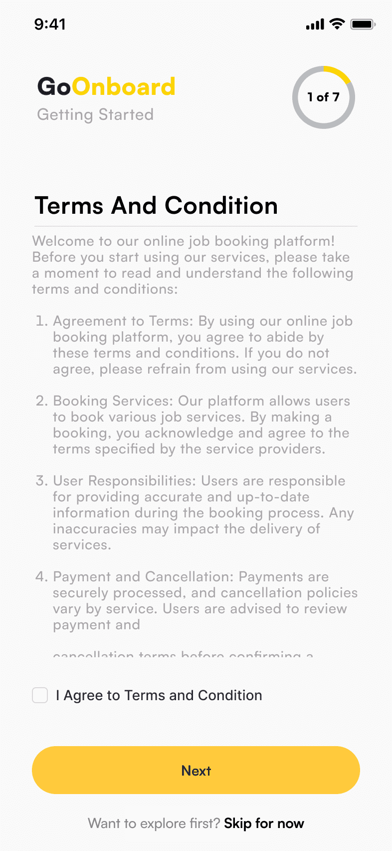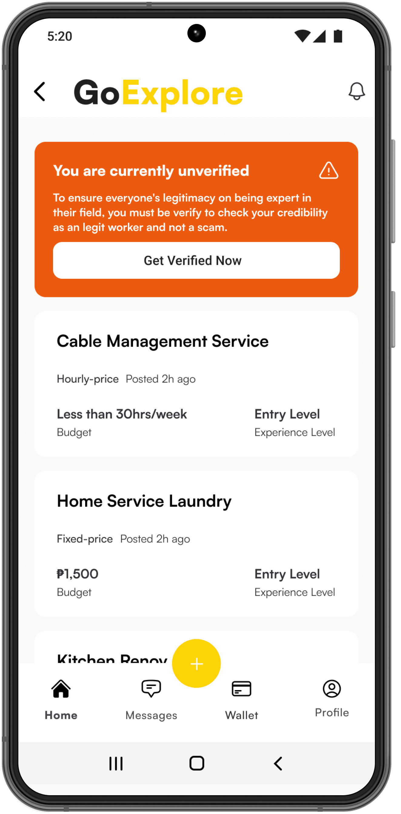 To enhance trust, we've implemented an onboarding procedure for every user signing up if they decided to post or accept any job. This step ensures the legitimacy of their credentials, reducing the risk of scams related to their expertise. Our goal is to create a platform where users feel secure and confident in their interactions, fostering a positive and trustworthy environment.
