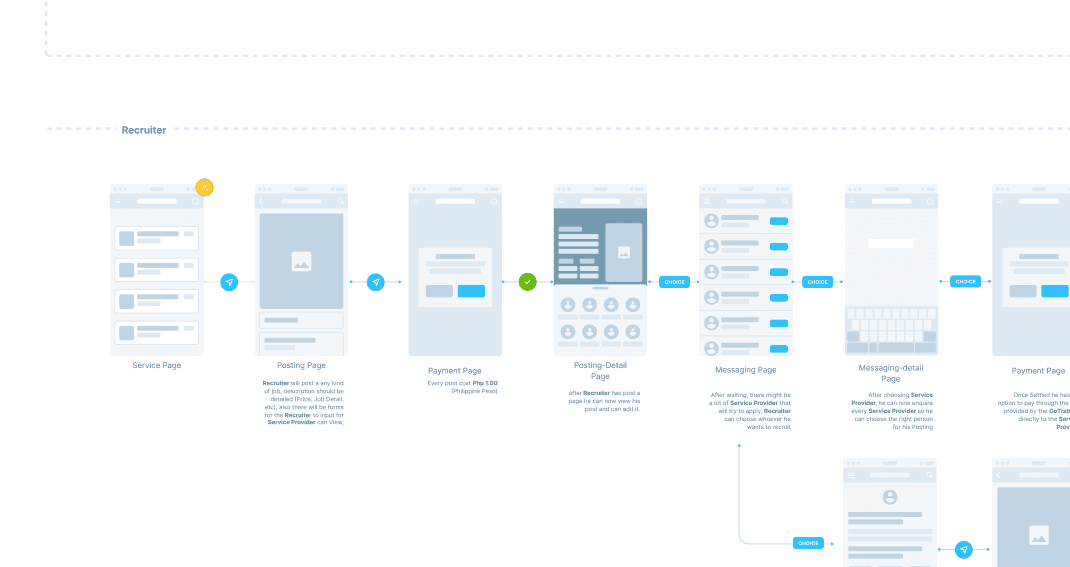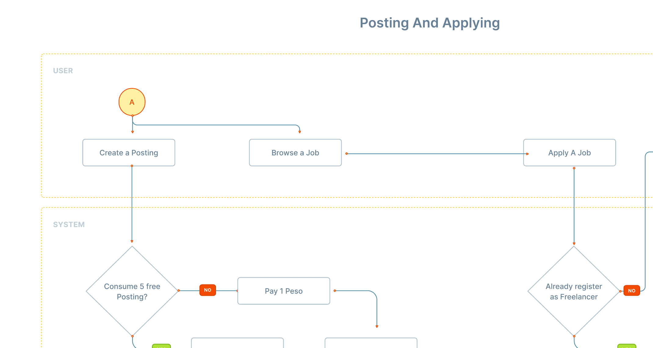I guided the app's flow to ensure a clear development path. The user flow incorporates essential modules: User Login, Posting and Applying, Hiring, Completing a Task (as Freelancer), and Completing a Task (as Tasker).