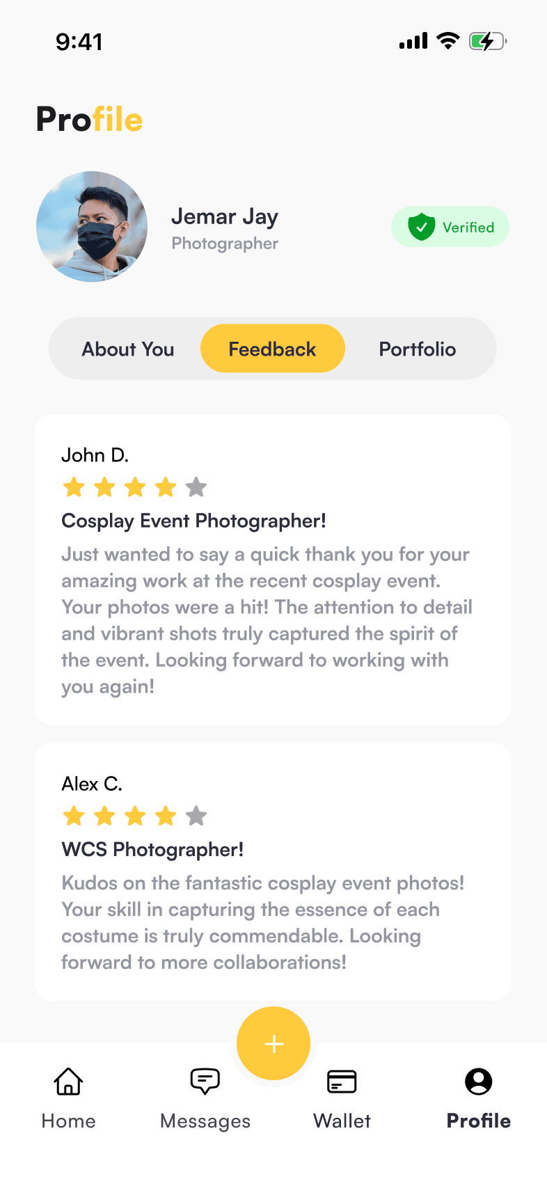To assess the capabilities of Freelancers, we utilize feedback. Others can gauge their work through a simple star rating system and accompanying descriptions. This allows for transparent insights into a Freelancer's performance, helping users make informed decisions based on the experiences of others.